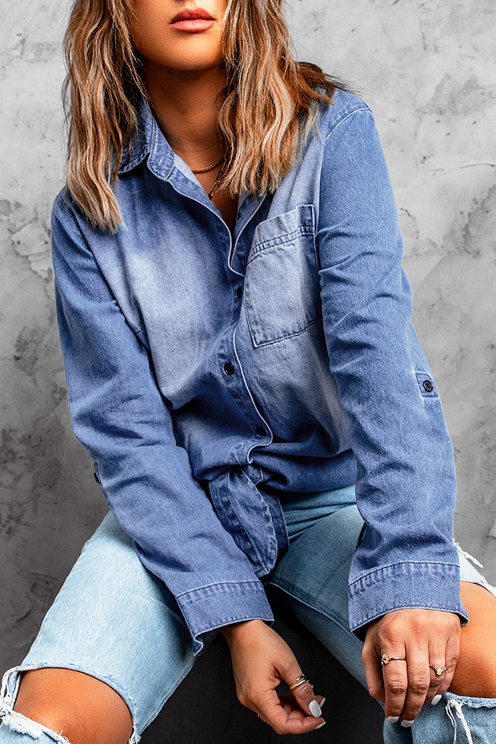 Blue Washed Pocketed Denim Shirt