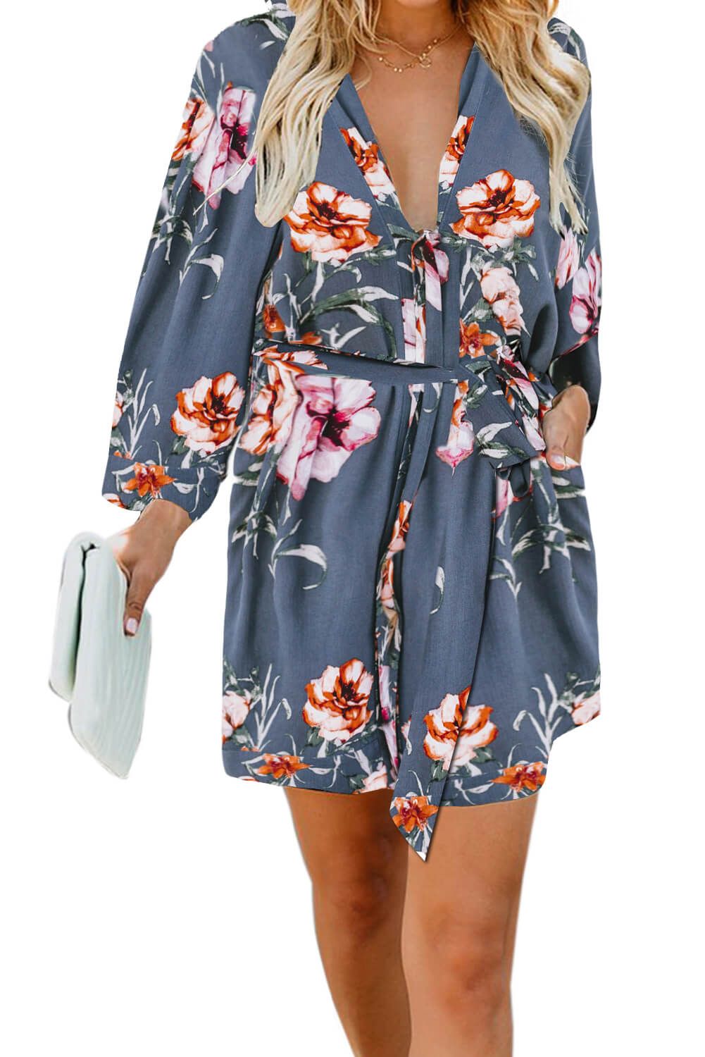 Black Casual V Neck 3/4 Sleeve Floral Dress