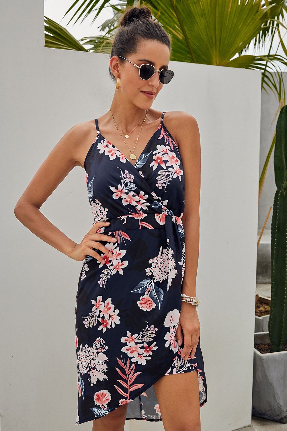 Gorgeous print dress, plunge neckline and adjustable straps