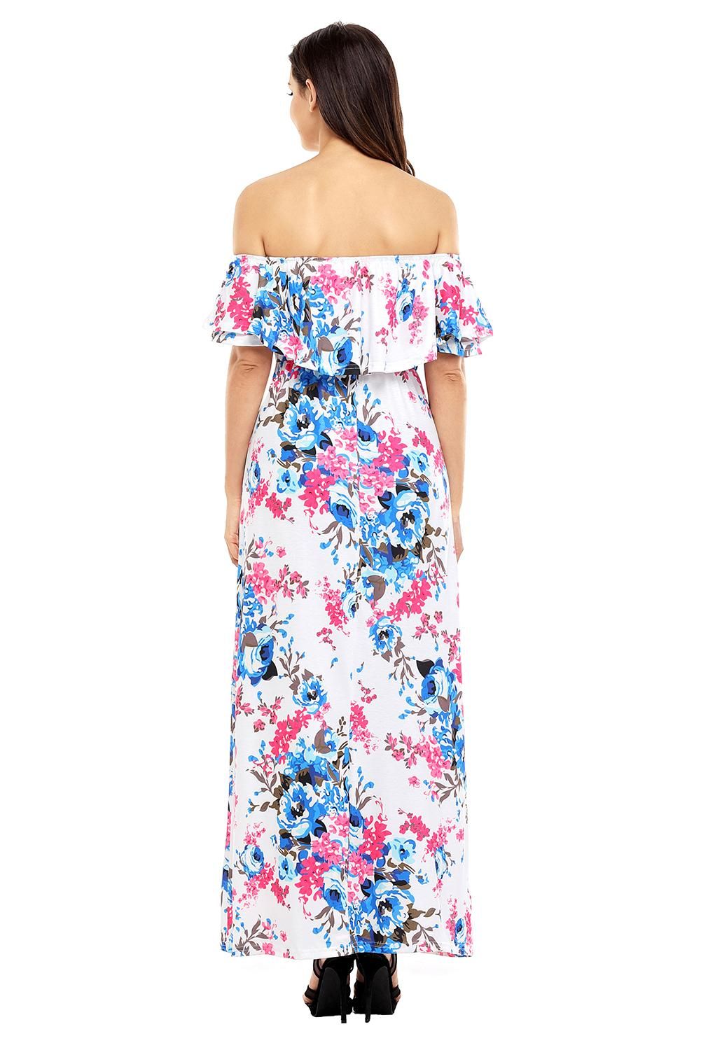 Flower Off Shoulder Long Boho Dress was designed to meet all your indivisual favorite demands, the stylish design details are moving and impressing that include off shoulder neckline with ruffled layer, charming floral print goes throughout the dress, boho style maxi length cut also makes this dress perfect for holiday and party!