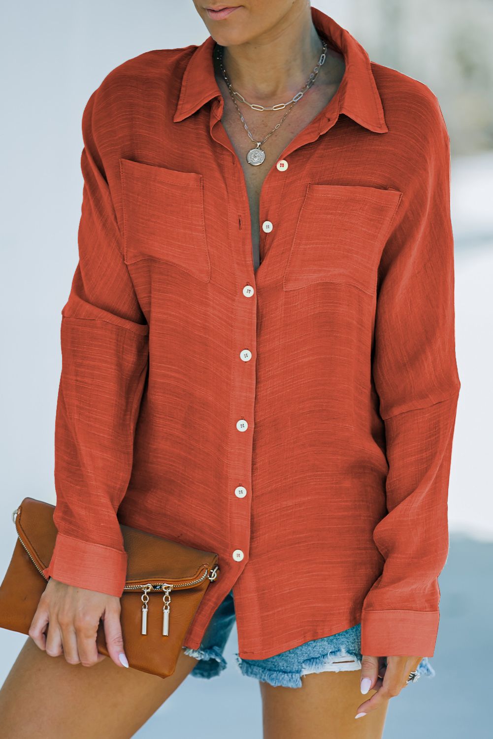 Green Loose Long Sleeve Buttoned Shirt with Pocket