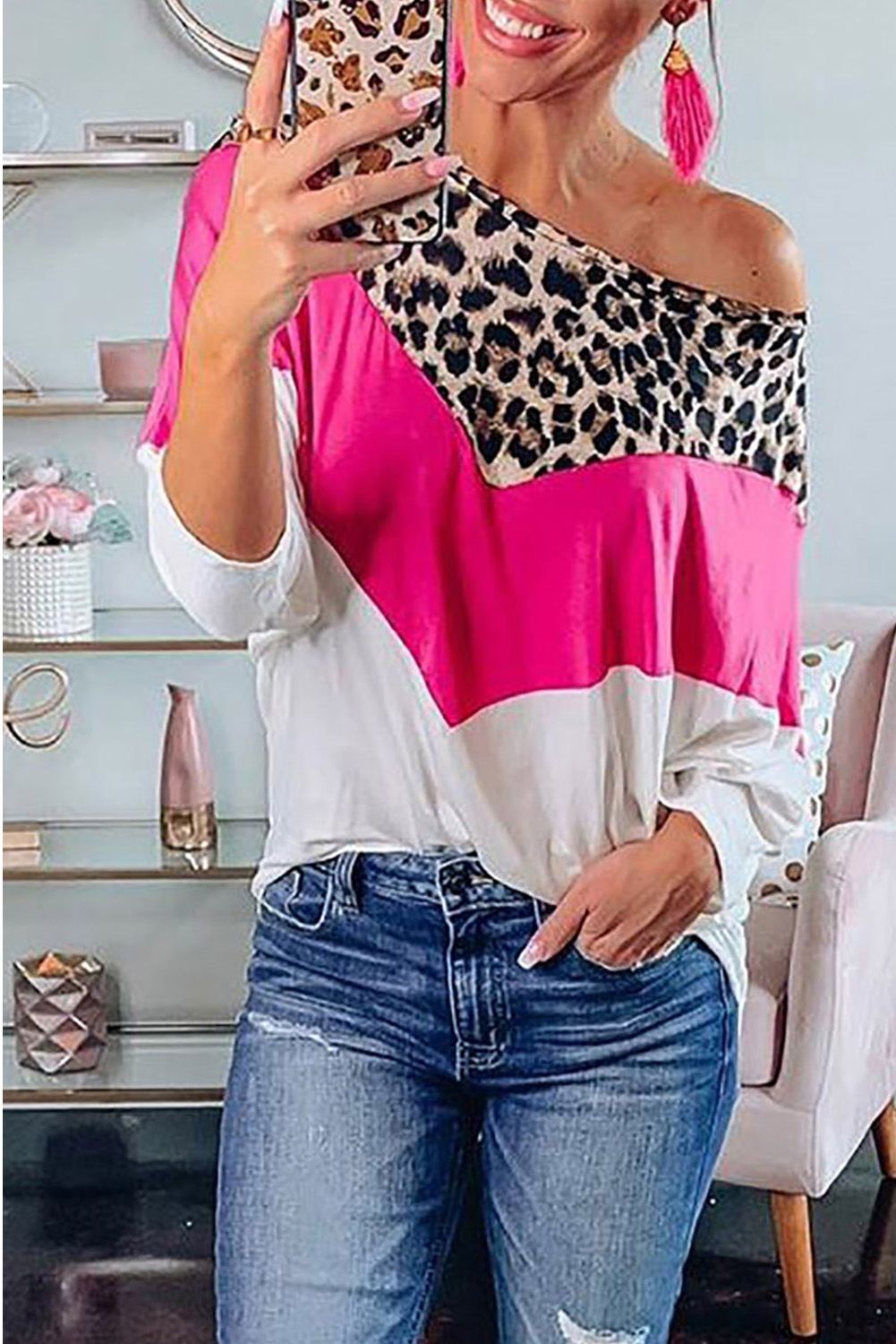 Wild free leopard print and colorblocks splicing