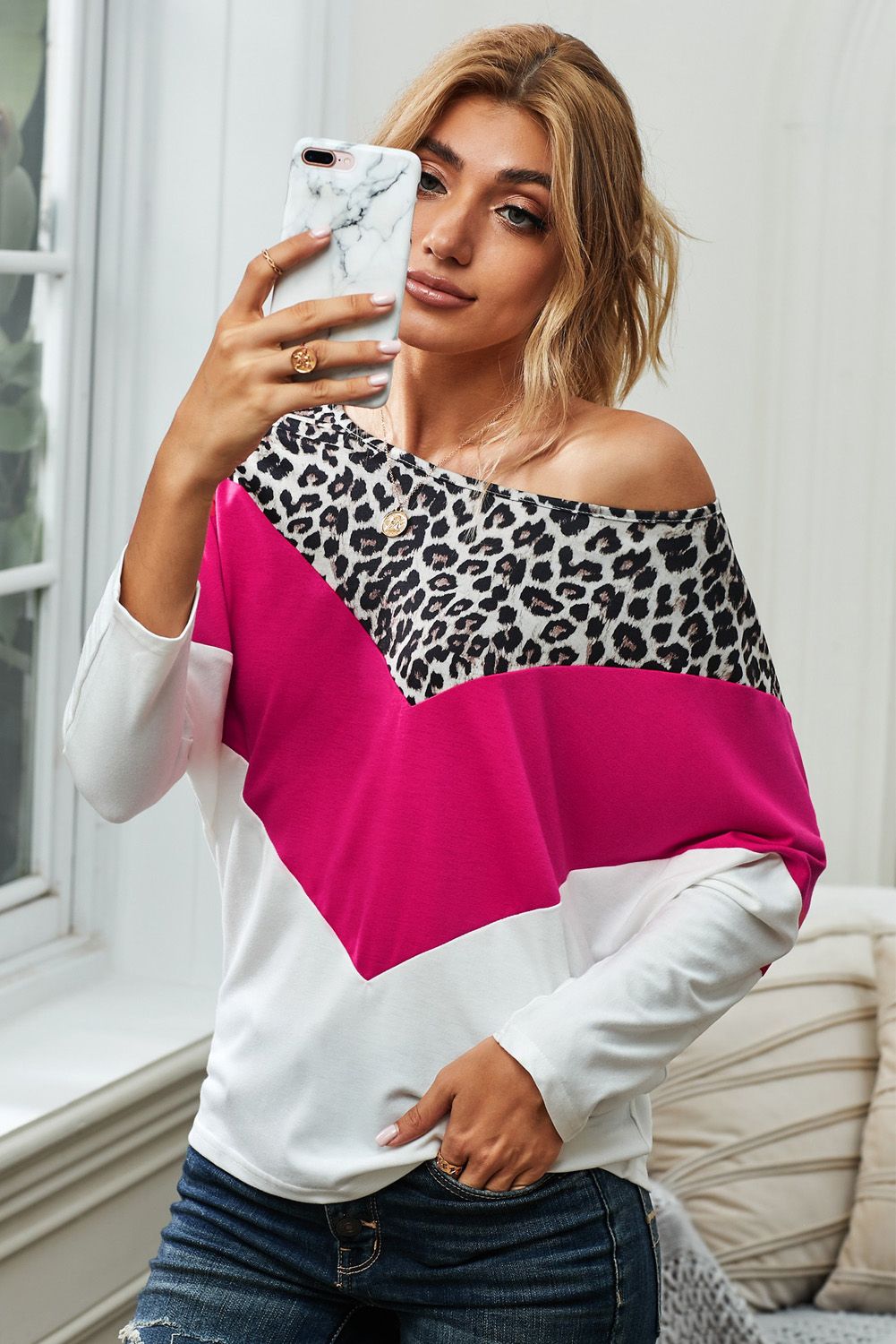 Leopard Rose White Splicing Blouse