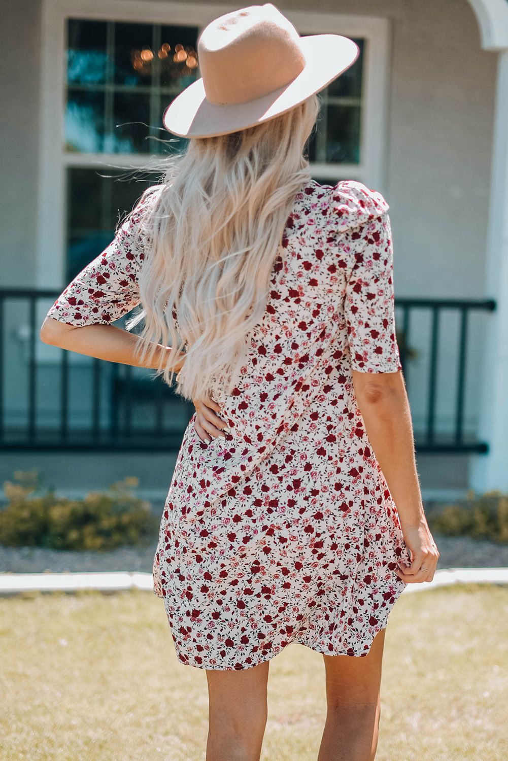 Puff Sleeve A-line Floral Print Mini Dress