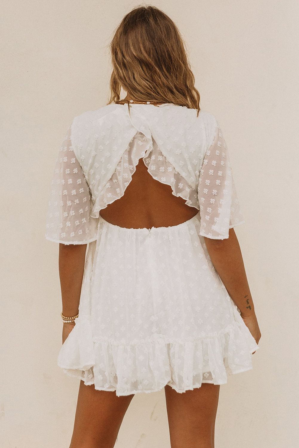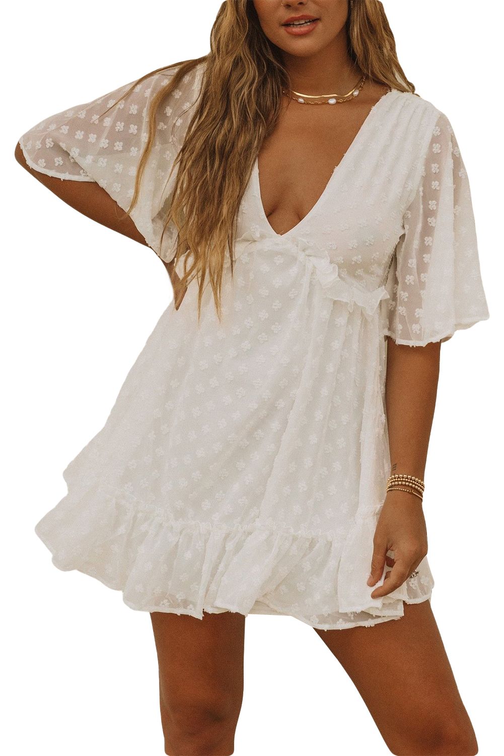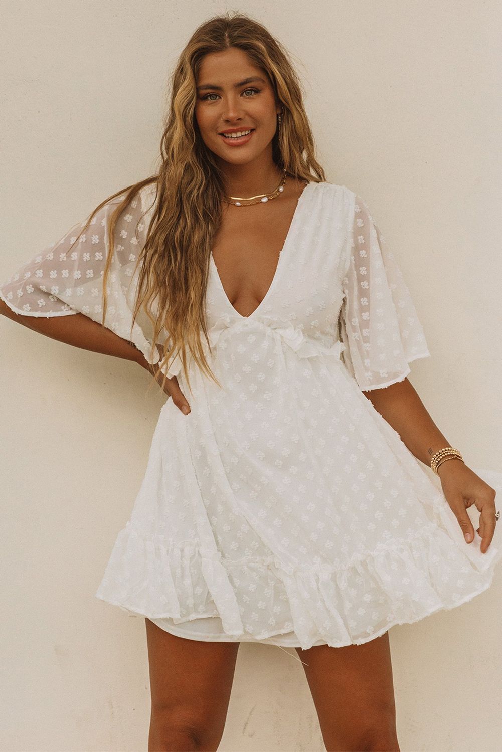 Swiss Dot Ruffled Deep V Neck High Waist Mini Dress