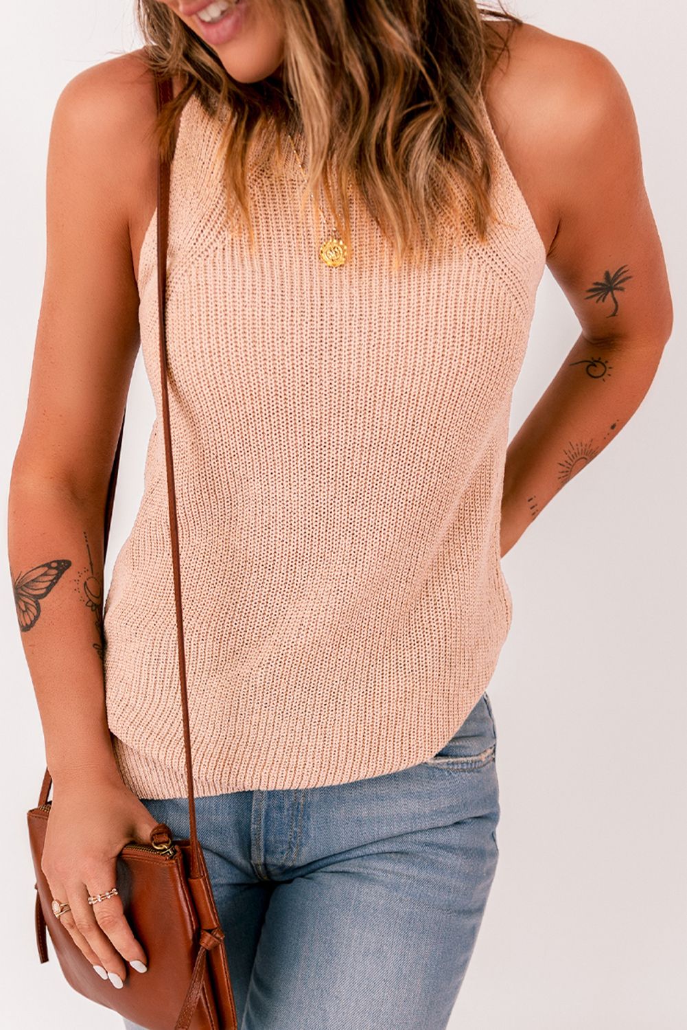 • This knit sweater tank is made in a flattering fit style